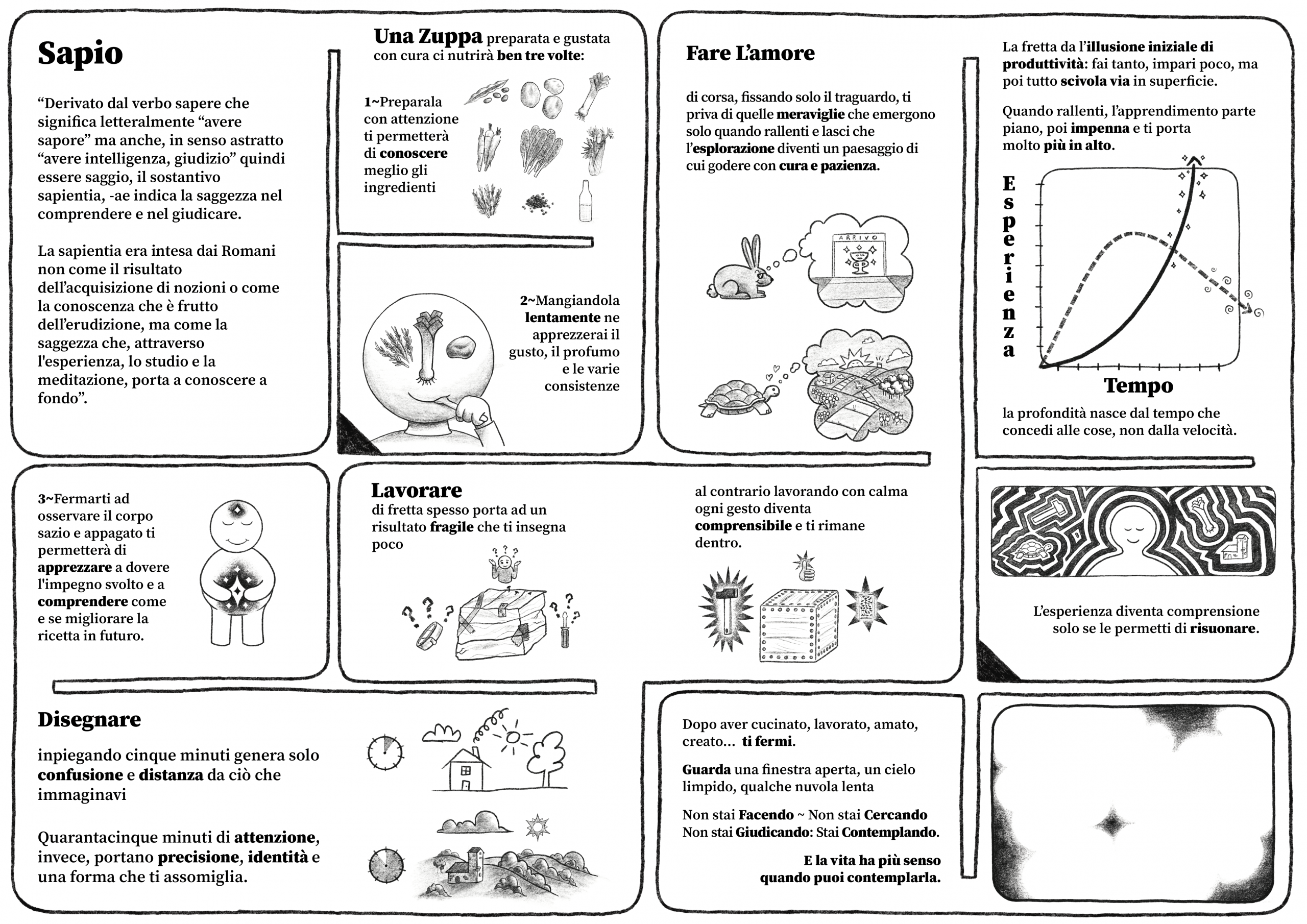 Le cinque poster-zine che la compongono ruotano attorno alla parola sapio, reinterpretata da ciascun partecipante secondo la propria sensibilità.